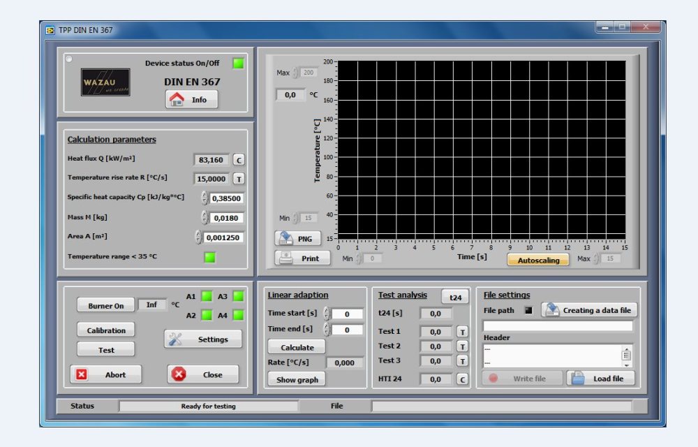 将水平放置的试样部分固定,样品下面气体燃烧器火焰产生80kw/m2入射热通量。用一个放在试样顶上并与之接触的小型铜热量计测量通过试样的热量。