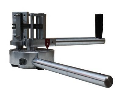 本机主要用于测试钢勾心的抗弯曲性能,将勾心插入夹具中使其绕直径为∮10mm的中心立柱旋转180°,目测表面小裂纹状况及是否断裂,判定其质量。